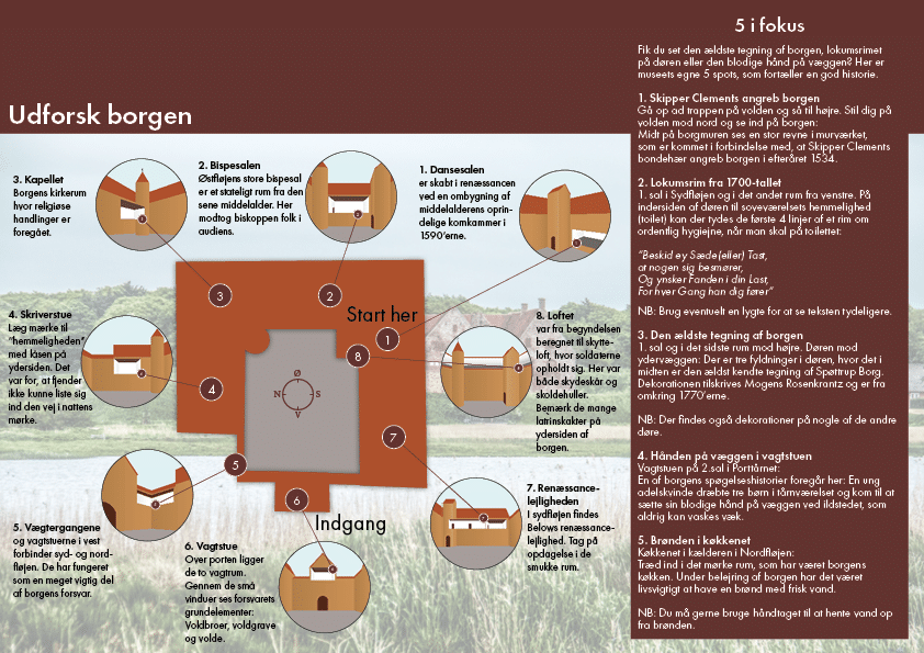 Willkommen im Schloss Spøttrup – einem der am besten erhaltenen Schlösser Dänemarks! Das Schloss ist majestätisch von beeindruckenden Wällen umgeben, die wunderschön von der malerischen Landschaft des Spøttrup-Sees eingerahmt werden. Im Laufe der Jahrhunderte haben die unüberwindlichen Verteidigungsanlagen den Feind in Schach gehalten, und die Burg wurde nie eingenommen.